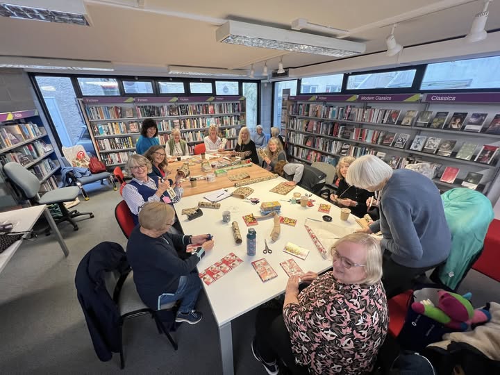 A Dartmouth craft group, "Stitchery", gathered on Wednesday, the 22nd of October 2025, in our Library to wrap presents for the Candlelit event in Santa's grotto on Friday night.